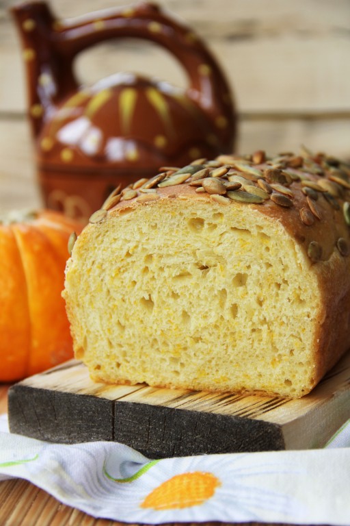 В сезон тыквы я часто пеку тыквенный хлеб по этому рецепту. Выпекается хлебушек в духовке, а замес теста можно сделать вручную или с помощью хлебопечки. Хлеб получается очень вкусным, пористым, красивым и при нарезании он не крошится. Такой хлебушек можно подать к супчику или сделать из него бутерброды. Отличный хлеб, попробуйте!