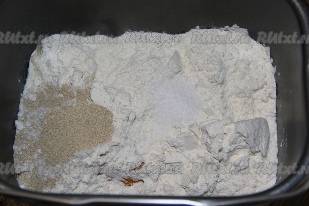 Добавить муку, дрожжи, соль и, выставив режим "Замес теста" (в моей хлебопечке тесто замешивается за 1,5 часа), дождаться сигнала об окончании замеса.