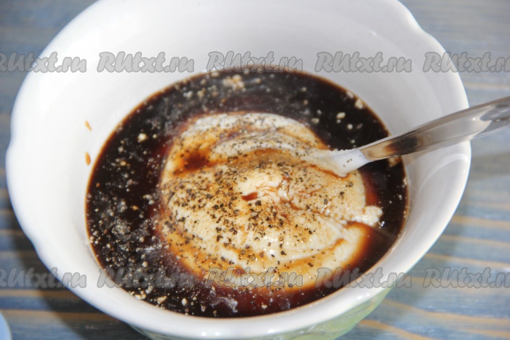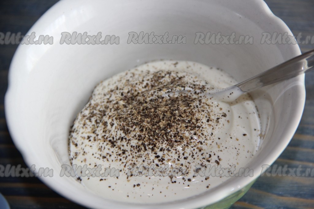 В небольшой ёмкости соединить сметану и специи (я взяла смесь перцев).