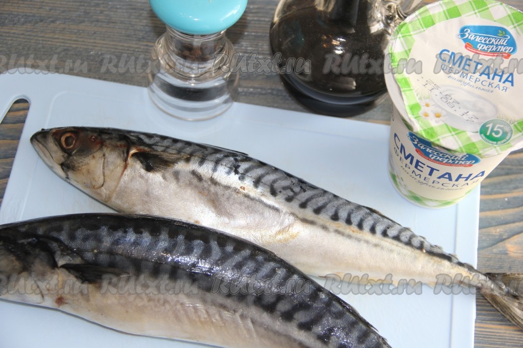 Подготовить продукты. Скумбрию разморозить при комнатной температуре. Сметану можно использовать любой жирности (я купила жирностью 15%)