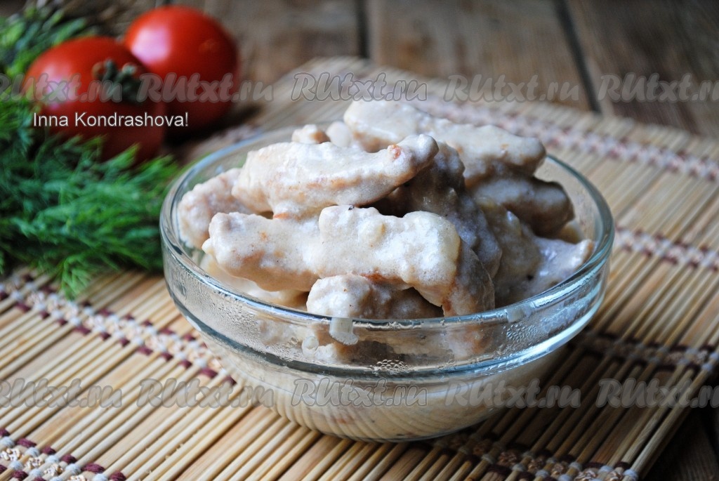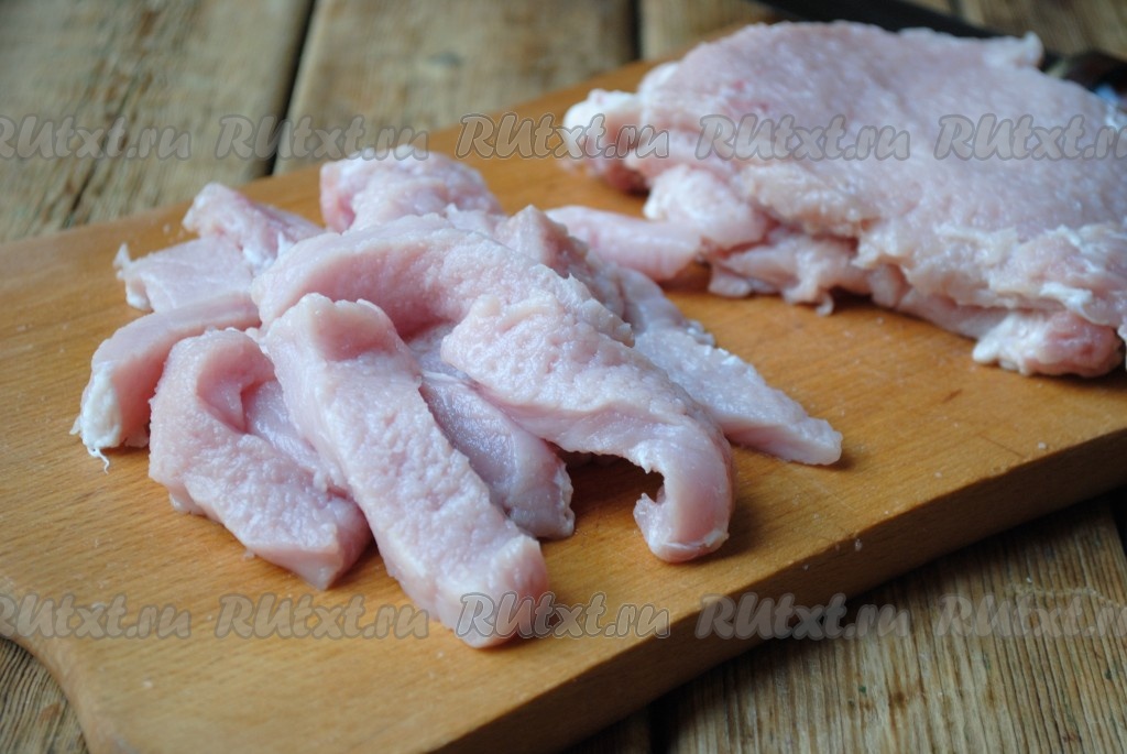 Затем мясо нарезать полосками шириной 0,5-1 см.