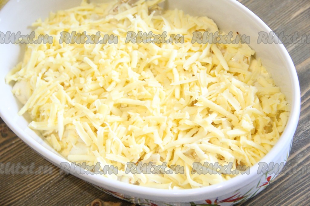 На дно жаропрочной формы выложить замороженные пельмени и разровнять в один слой.