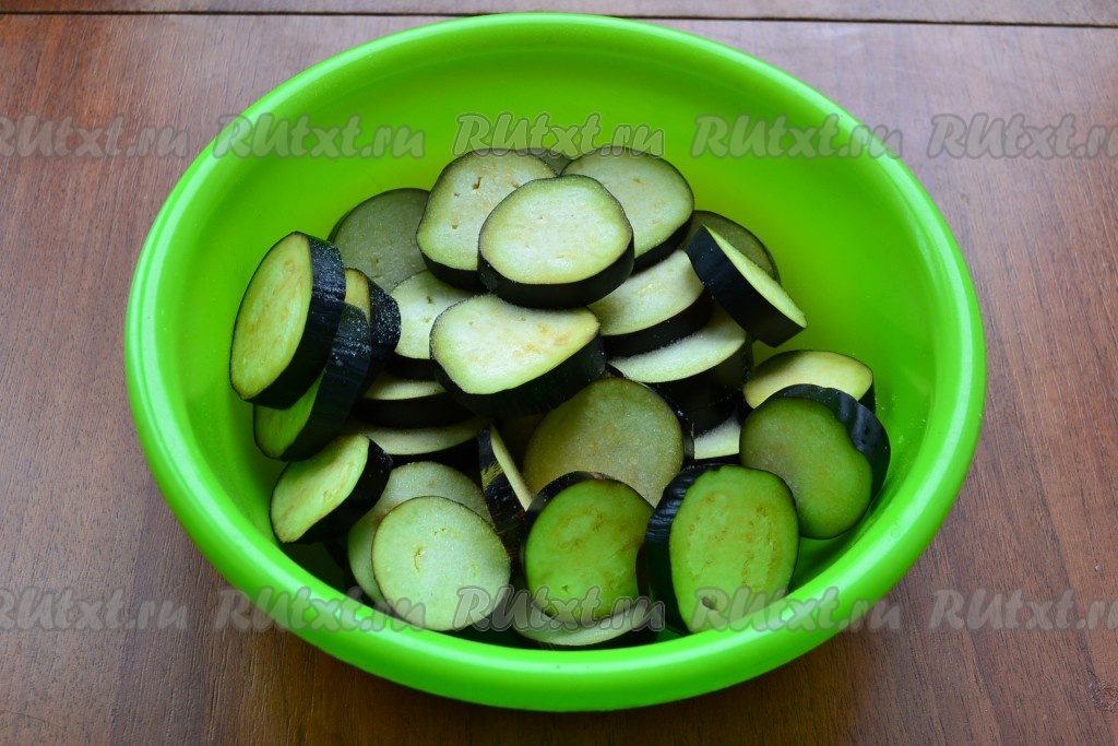 Баклажаны, нарезанные кружочками толщиной около 1 см, посолить и оставить минут на 30.