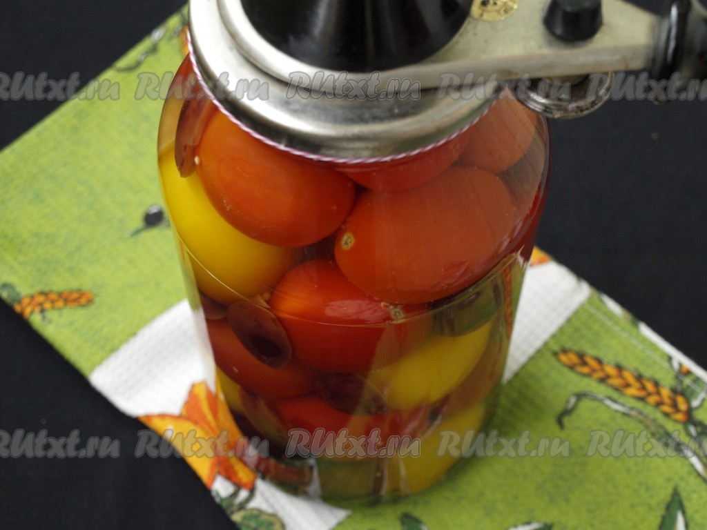 Кипящим маринадом залить содержимое банки и завинтить ключом до упора.