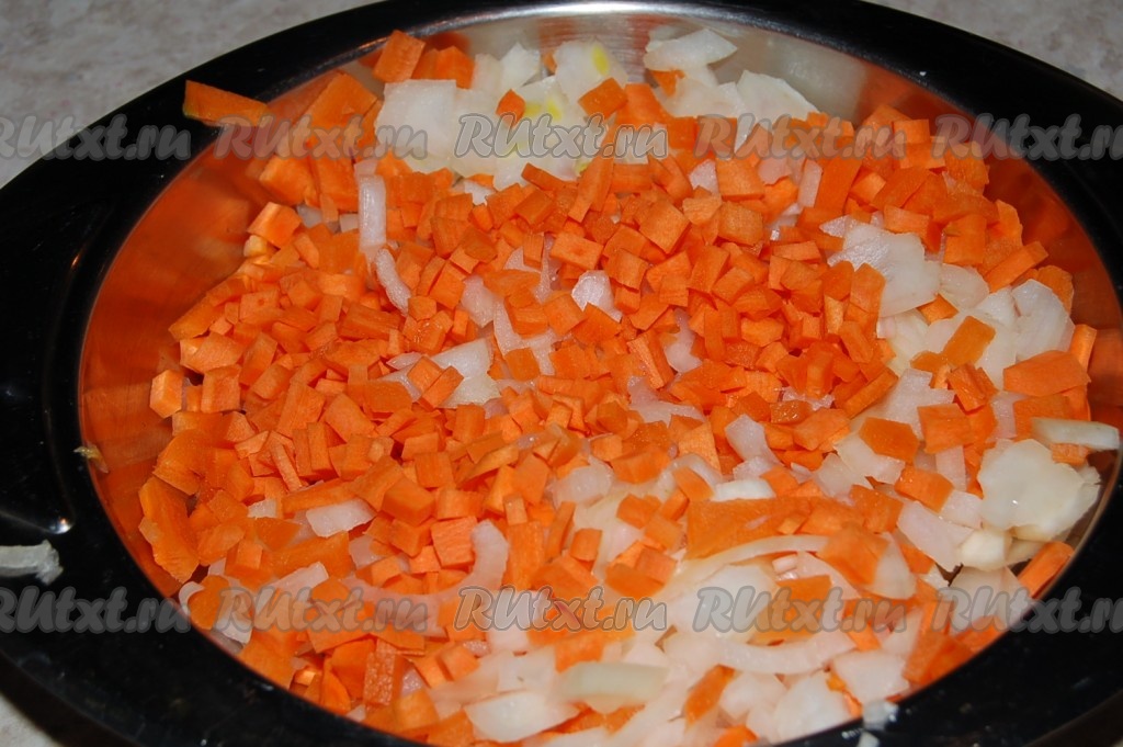 Нарежем лук и морковь небольшими кубиками.