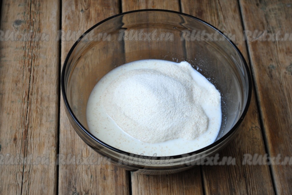 Перемешать смесь молока и манки, оставить на 1 час при комнатной температуре (манная крупа должна набухнуть).
