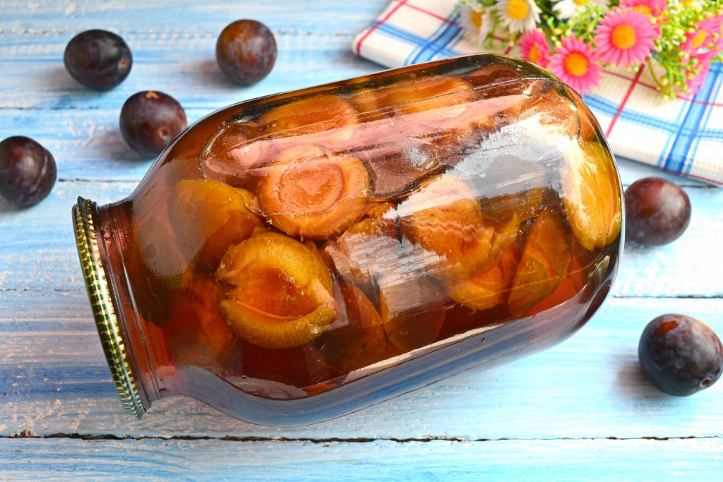 Необычайно вкусный компот из слив, приготовленный на зиму, укутать и оставить до полного остывания. Затем банку с компотом отправить на хранение. Хранить компот можно при комнатной температуре.