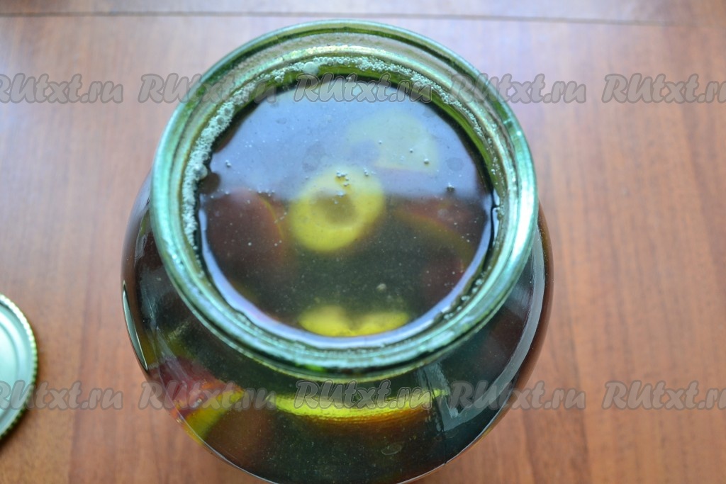 Сразу же банку с компотом закатать и перевернуть.