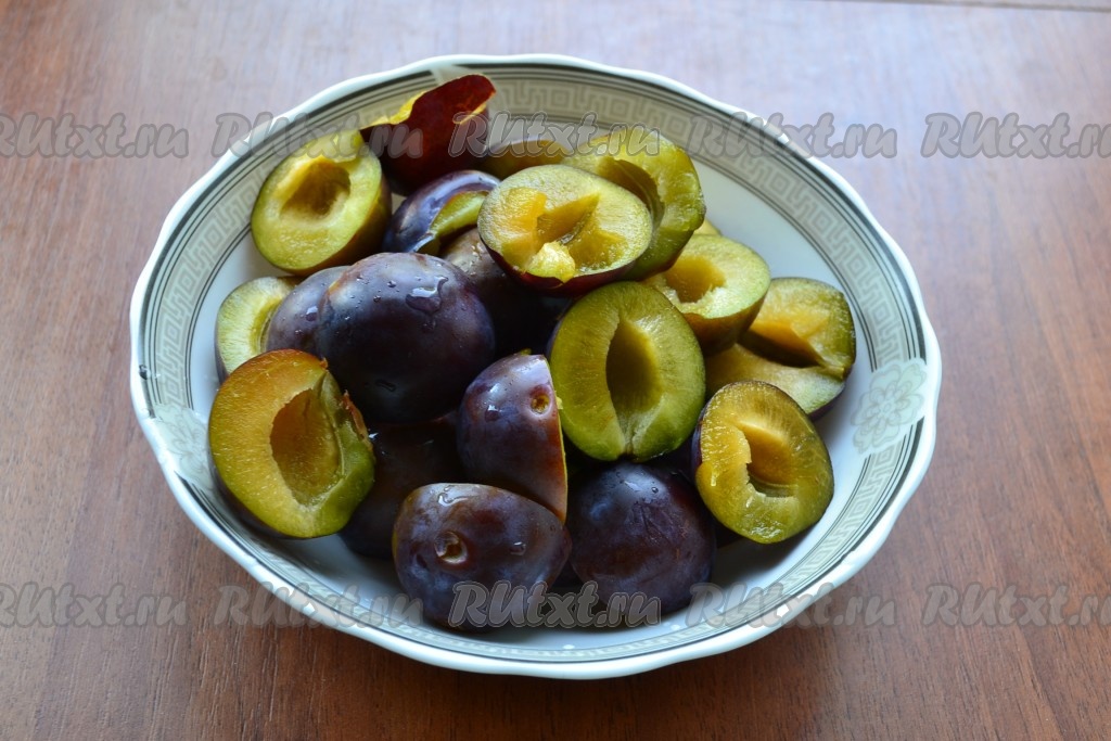 Сливы вымыть и удалить косточку, разделяя каждую сливу на половинки.