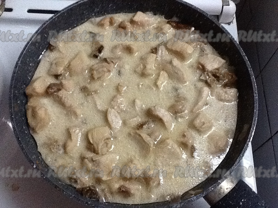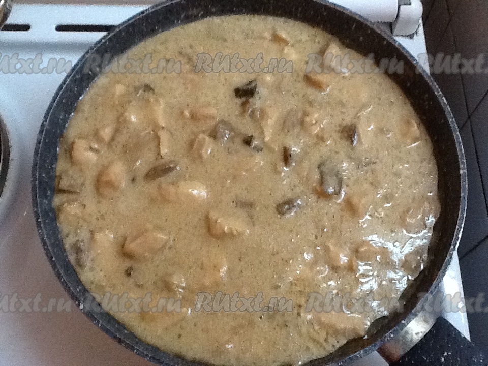 Накрыть сковороду крышкой и оставить тушиться минут 10. Наша вкуснейшая куриная грудка с грибной подливкой готова! Манящий аромат уже позвал всех домашних на кухню!