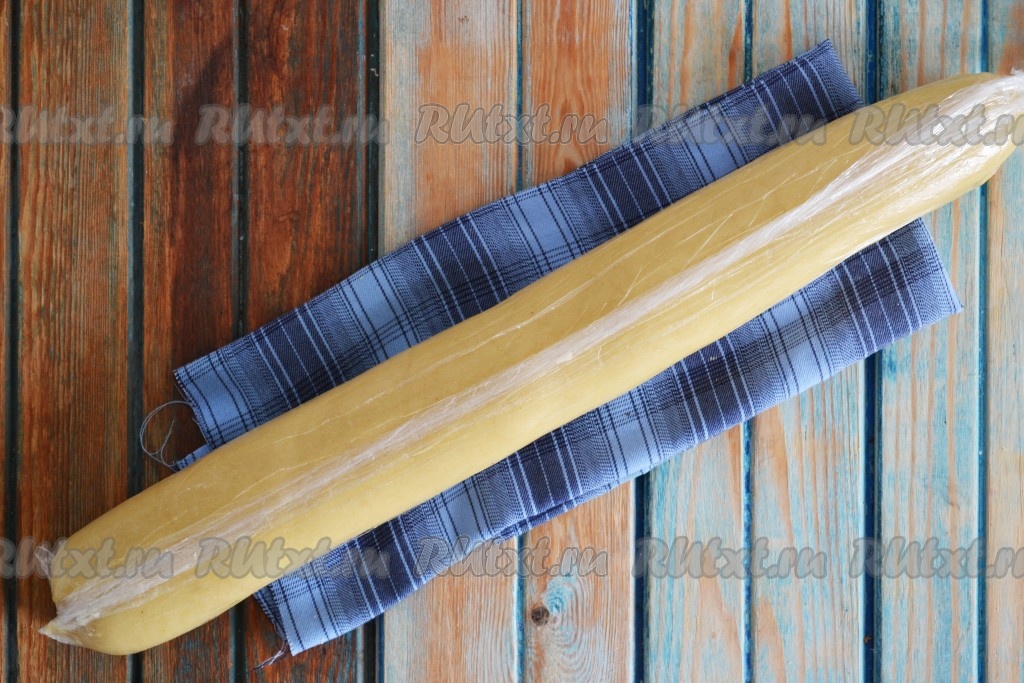 Скатать тесто в валик (чтобы было удобно с ним работать, разделить тесто на 2-3 части), обмотать пищевой пленкой и отправить в холодильник минимум на 30 минут.