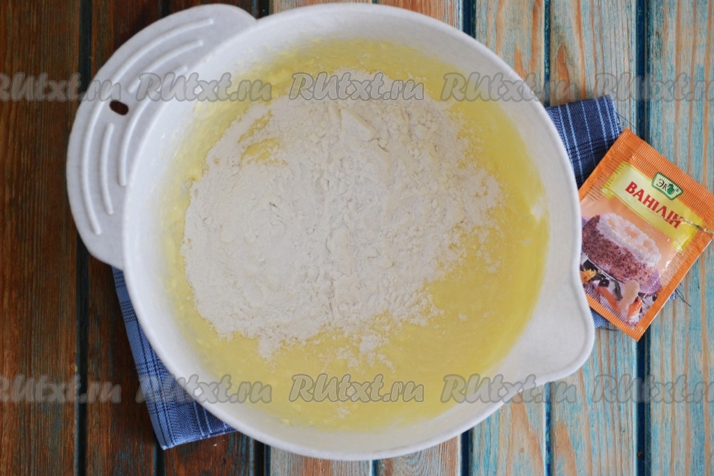 Всыпать крахмал и ванилин.
