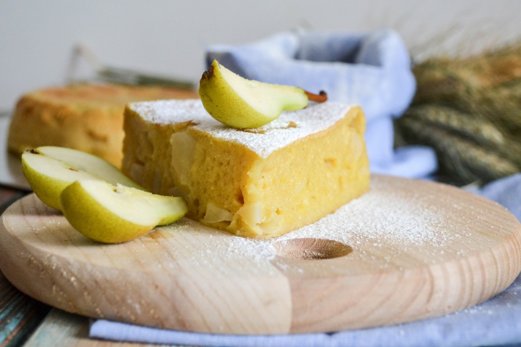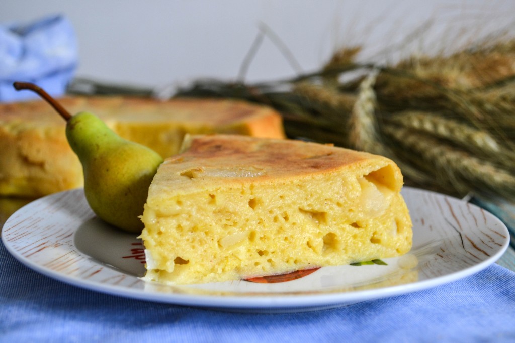 Вкусный, влажный и ароматный грушевый пирог готов. Его можно подавать к чаю, кофе или с чашечкой молока.