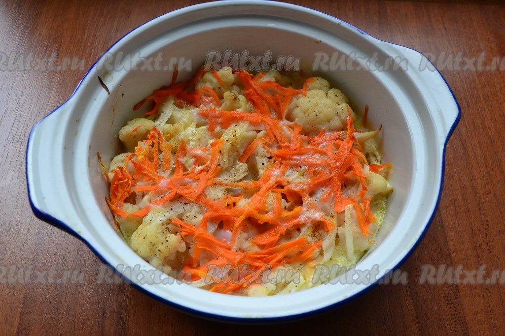 Также выложить очищенную морковь, натертую на крупной терке.