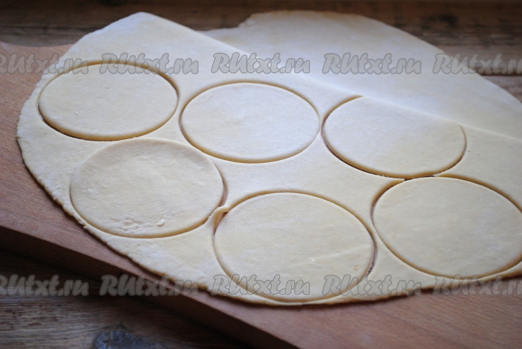 Хорошо скрепить края каждого кружочка, формируя вареники. Таким образом использовать всё тесто и начинку.