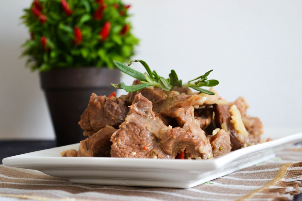 Вкуснейшее мясо великолепно сочетается с картофельным пюре, макаронными изделиями и свежими овощами.