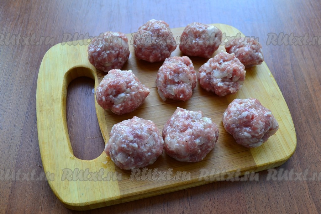 Тщательно фарш перемешать и руками сформировать небольшие шарики - фрикадельки.