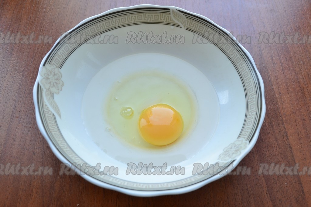 Приготовить тесто для клецок: в миску разбить яйцо, добавить соль и воду.