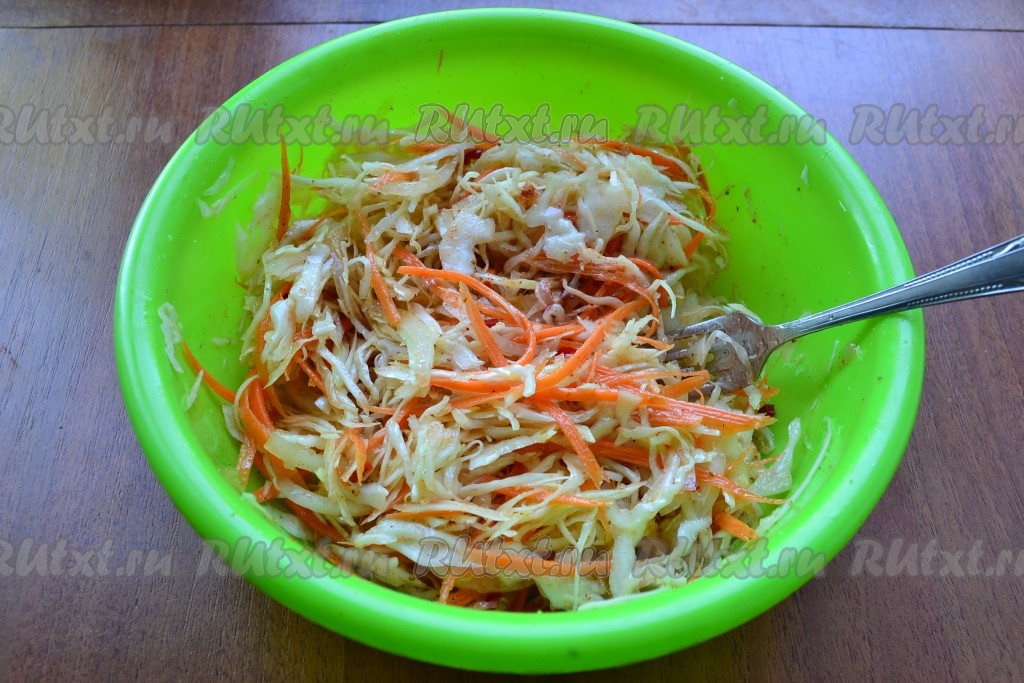 Капусту тщательно перемешать и оставить в прохладном месте на 10 минут.