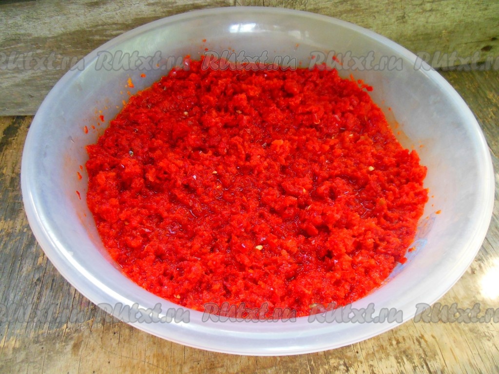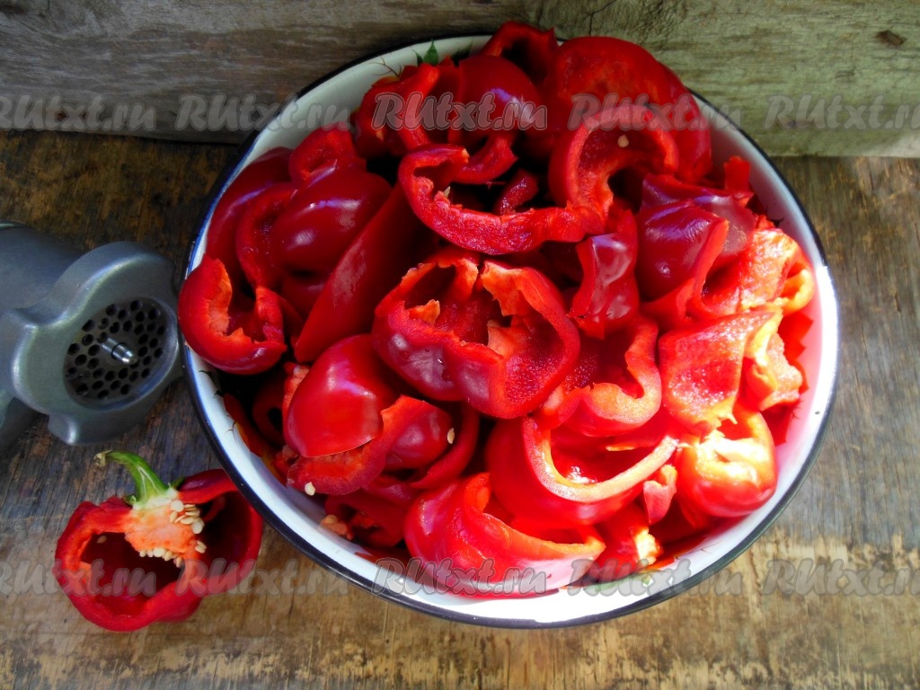 Кусочки очищенного болгарского перца пропустите через мясорубку.