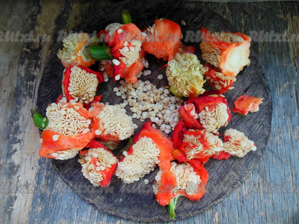 Семенную коробочку не выбрасывайте, из нее необходимо достать семена (они должны быть беленькими). Отложите 1,5-2 столовые ложки семян, мы их в дальнейшем добавим в заправку. В таких семенах содержится очень большое количество витаминов, к тому же они очень ароматные. Оставшиеся семена я не выбрасываю, а сушу их отдельно и зимой добавляю в качестве приправы к мясу, первым блюдам, рыбе.