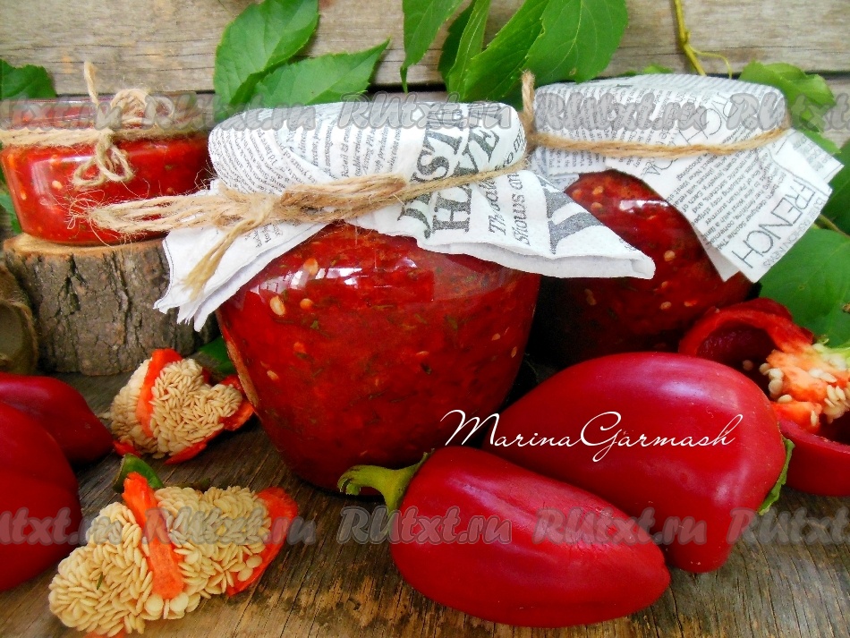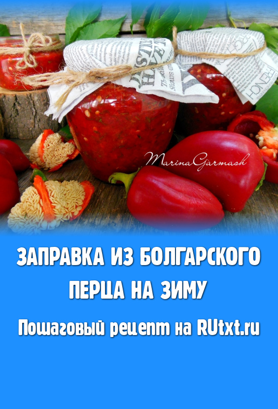 Разложите заготовку по баночкам, накройте крышками. Уберите заправку из болгарского перца на хранение в холодильник.