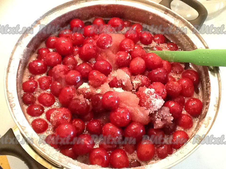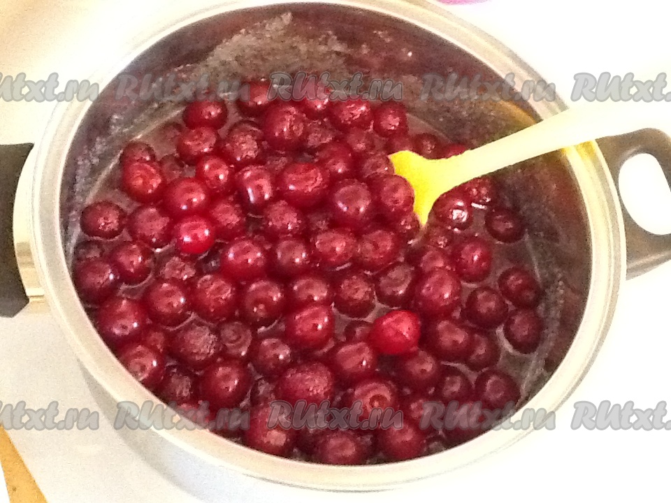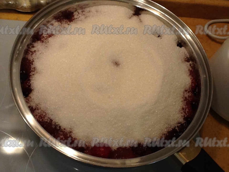 Выкладываем в кастрюлю вишню и сверху засыпаем оставшимся сахаром.