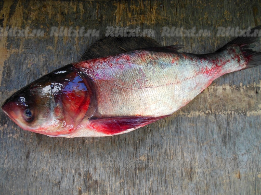 Очистите толстолобика от чешуи и внутренностей. Удалите голову, плавники и хвост - из них можно приготовить хорошую уху или заливное. Тушка рыбы без головы, внутренностей и плавников вышла весом 800 грамм.