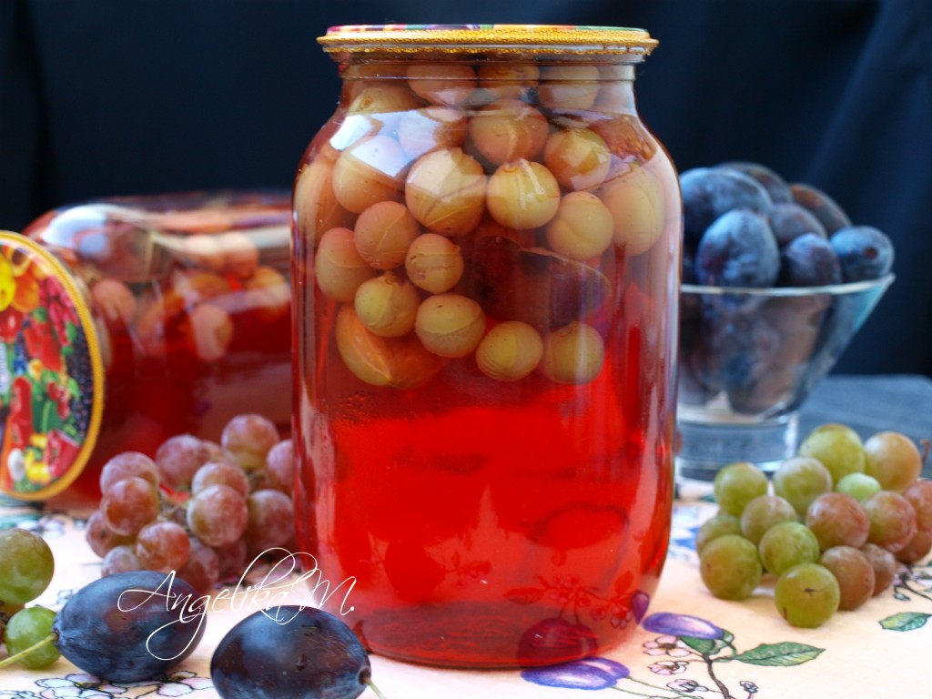 Очень вкусный и ароматный компот из слив и винограда, приготовленный на зиму, можно хранить в условиях городской квартиры.