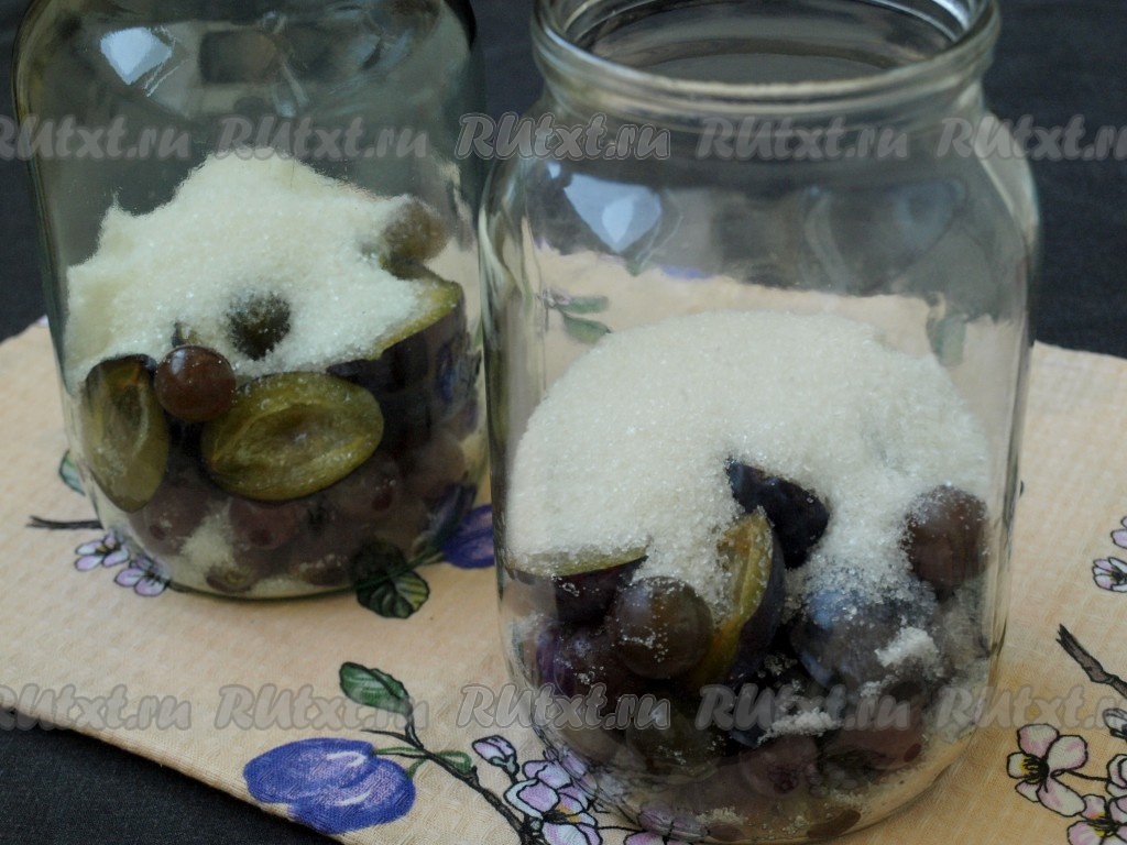 Разложить плоды поровну в чистые стерильные банки. Можно взять одну банку на 2 литра или две банки по 1 литру (я взяла 2 литровые банки).