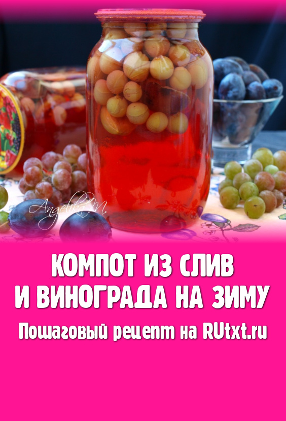 Предлагаю заготовить на зиму очень вкусный компот из слив и винограда. Такой напиток порадует своим вкусом в зимне-весенний период. Количество сахара в компоте можно регулировать, исходя из личных предпочтений и сладости плодов. Закатывать компот можно из слив с косточками, а виноград можно оставлять на веточках. Я предпочитаю всё удалять, так больше вмещается в банки. Расчёт дан на 2 литра компота.
