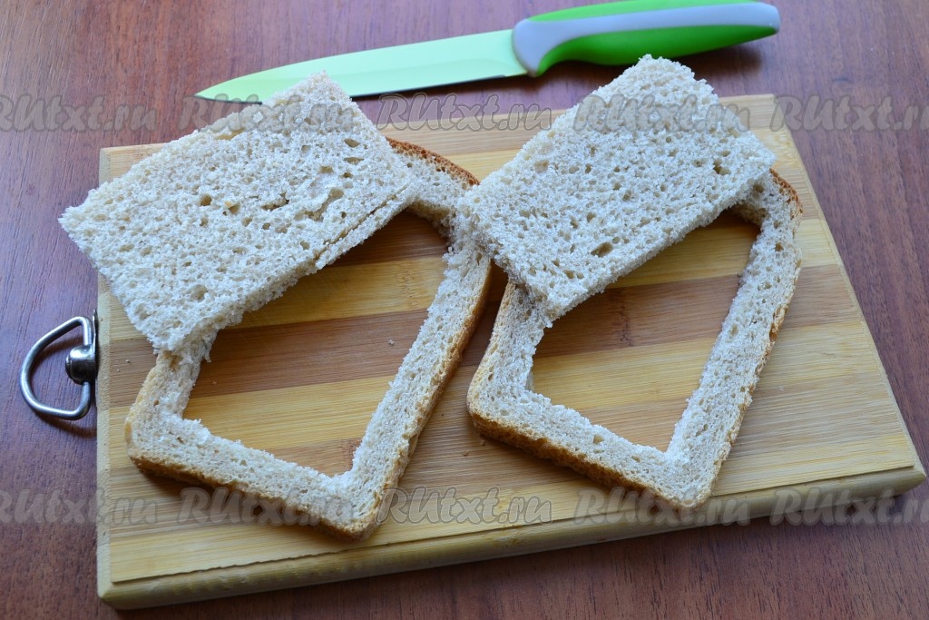 Из ломтей хлеба вырезать аккуратно мякоть.