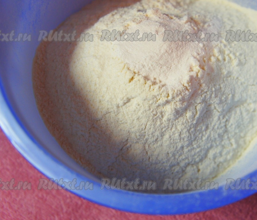 Прежде всего замесим тесто. Муку нужно просеять в миску.