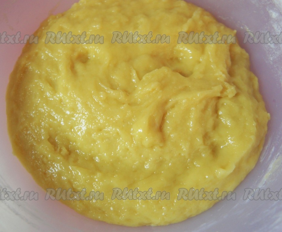 Тесто для тёртого пирога должно получиться глянцевым, тягучим и липким, но при этом уже держащим форму.