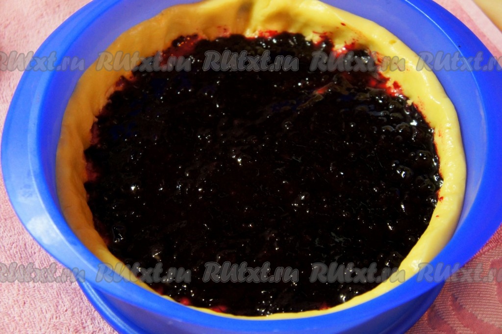 Свежую чернику промыть водой, выложить на бумажное полотенце, дать обсохнуть. Замороженные ягоды, если на них нет большого количества льда, можно не размораживать. Чернику смешать с сахаром и выложить поверх теста.