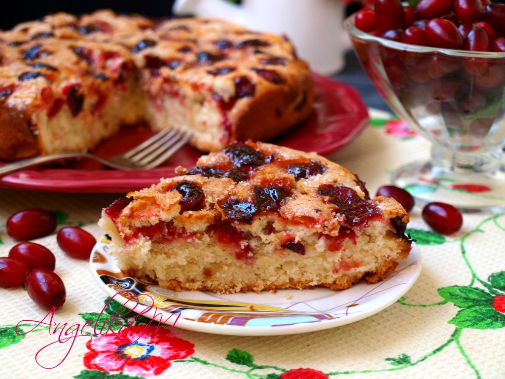 Невероятно вкусный и ароматный пирог с кизилом подавать к чаю или кофе, разрезав на желаемые порции.