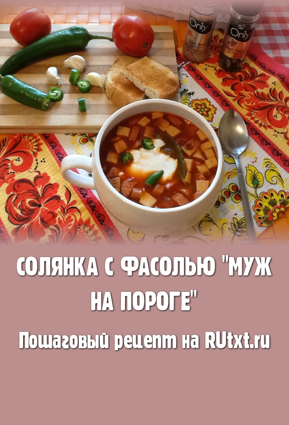 Хочу предложить вашему вниманию рецепт солянки с фасолью, которую я назвала "Муж на пороге". Это любимое многими первое блюдо готовится всего за 30 минут. Оно часто выручает меня, когда особо нет времени на приготовление... Я использую любые колбасные изделия, которые найдутся в холодильнике. Солянка с фасолью "Муж на пороге" получается наваристой и густой, поэтому может насытить всех, объединив воедино первое и второе! Рекомендую приготовить это простое и вкусное блюдо! Надеюсь, ваши близкие останутся довольны!