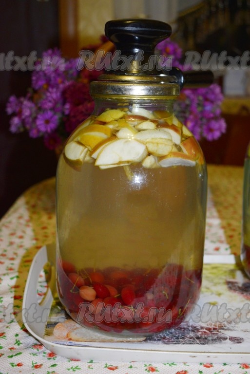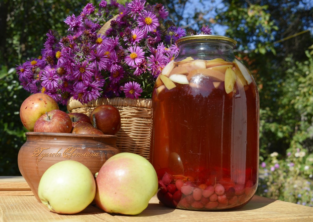Аккуратно берём банку с помощью полотенца и немного трясем, чтобы растворился сахар. Переворачиваем банку вверх дном, укутываем одеялом до полного остывания. Компот из яблок и кизила получается очень вкусным, насыщенным, терпковатым и с кислинкой! Зимой такой напиток с удовольствием выпивается всеми членами нашей семьи. Попробуйте и вы, надеюсь, вам понравится!
