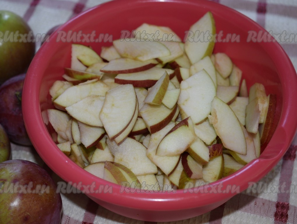 Яблоки обрезаем от битых мест и сердцевинок, нарезаем на дольки средней величины.