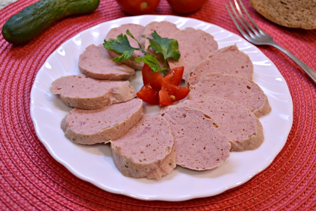 Вкуснейшую "Докторскую" колбасу, приготовленную в домашних условиях, быстро охладить под холодным душем, дать полностью остыть и поместить в холодильник хотя бы на 12-15 часов. После этого снять оболочку, а колбаску нарезать и подать к столу.