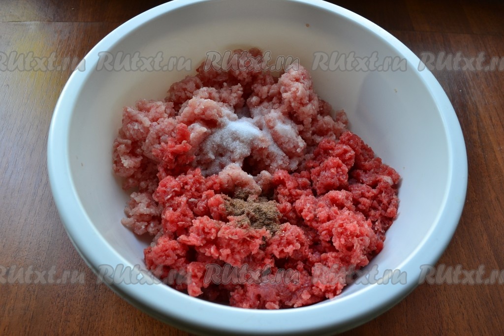 Фарш должен быть холодным, не более 10 градусов, поэтому после перекручивания его нужно снова минут на 30-40 поместить в морозилку. Добавить в фарш соль, нитритную соль, молотый мускатный орех.