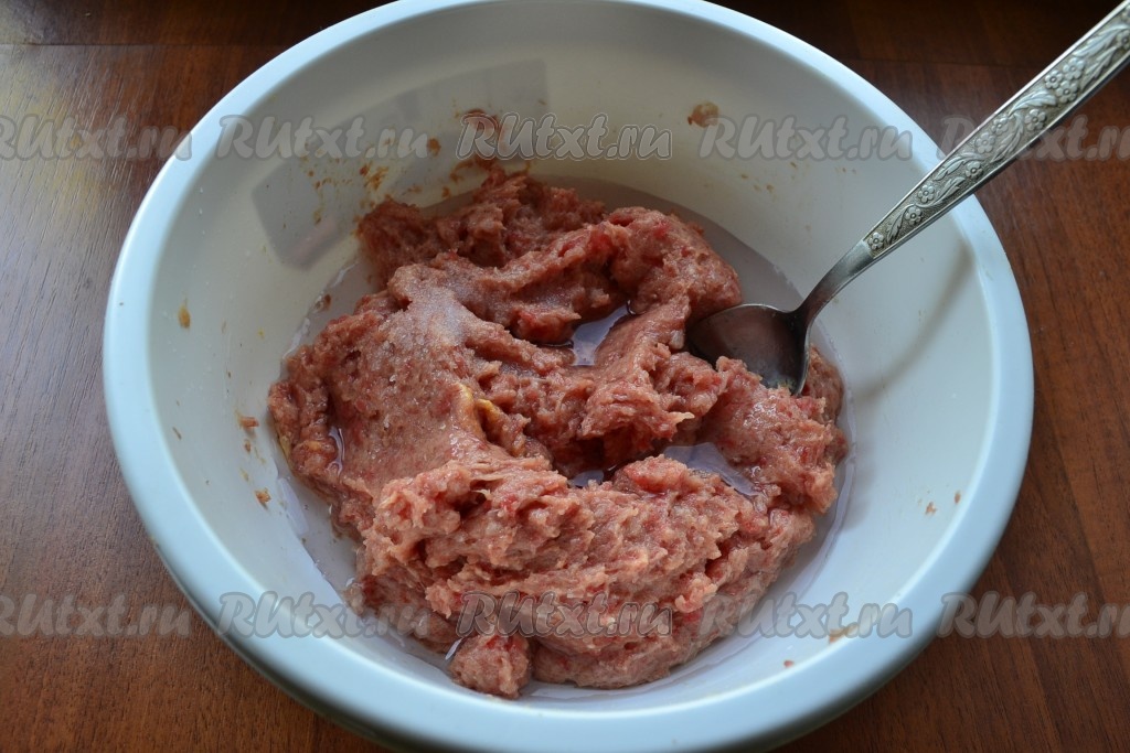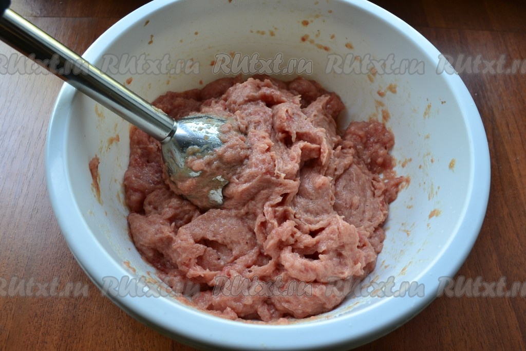 И затем погружным блендером измельчить фарш до состояния однородной эмульсии. Взбивать (измельчать) нужно не менее 4-5 минут.