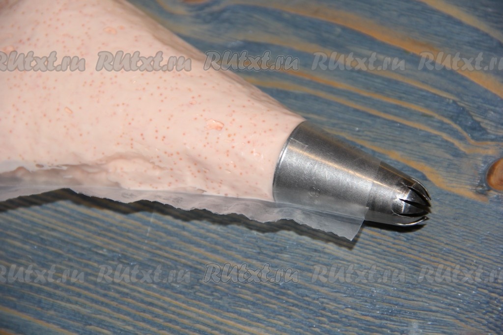 Получившийся крем переложить в кондитерский мешок с фигурной насадкой.