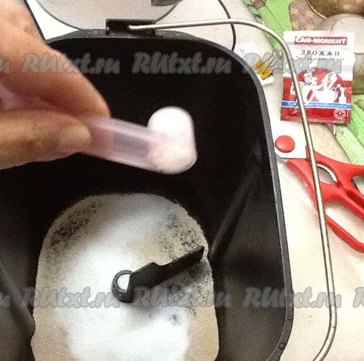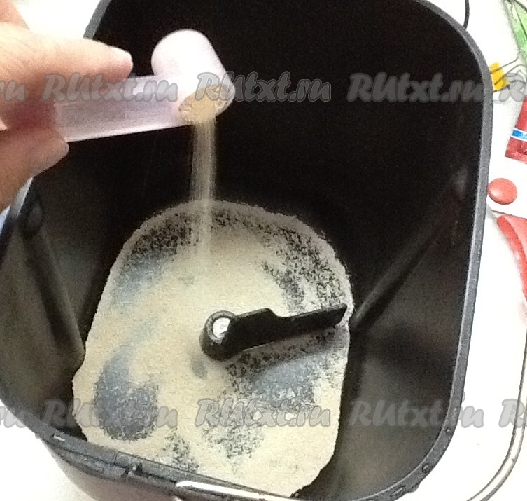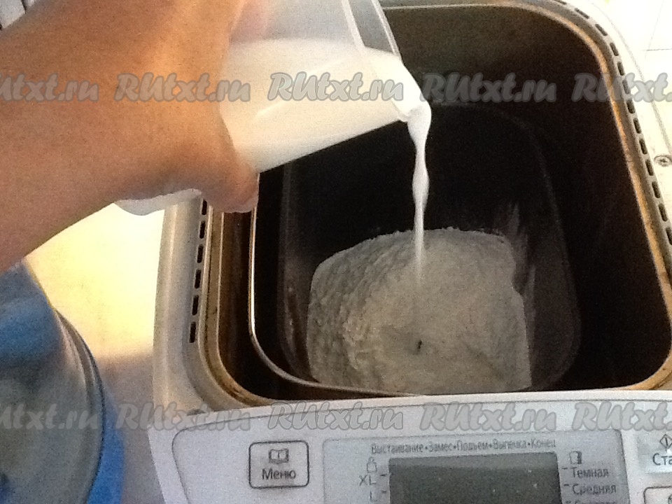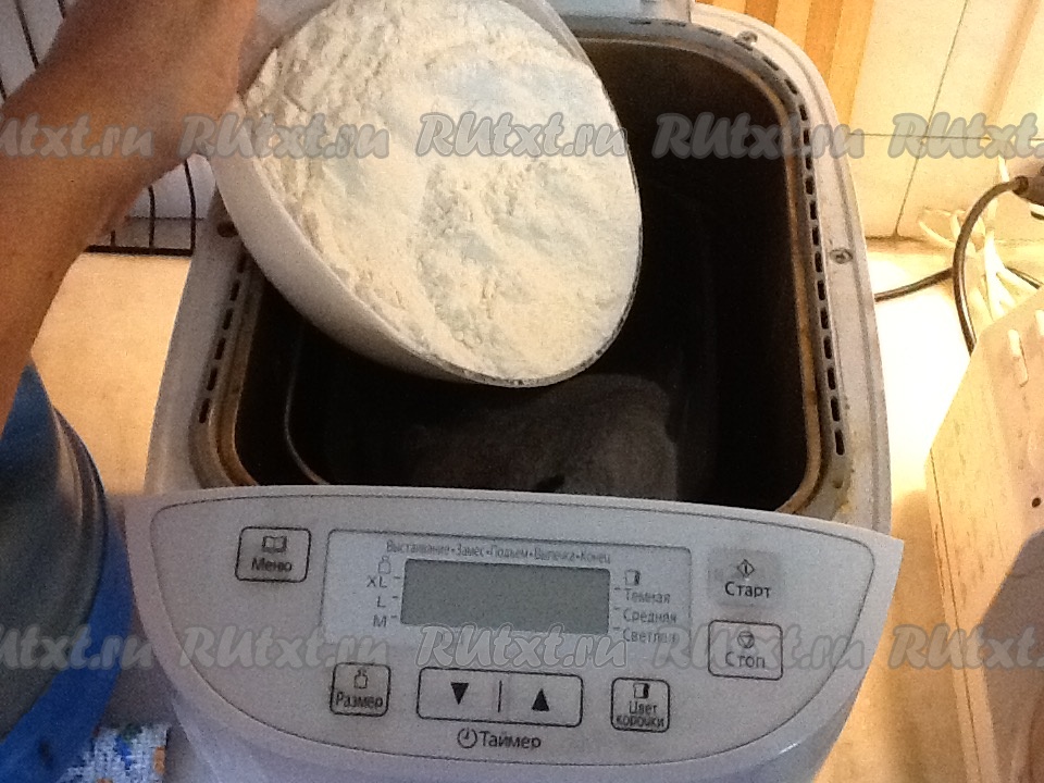 Просеянную муку пересыпать в контейнер хлебопечки.