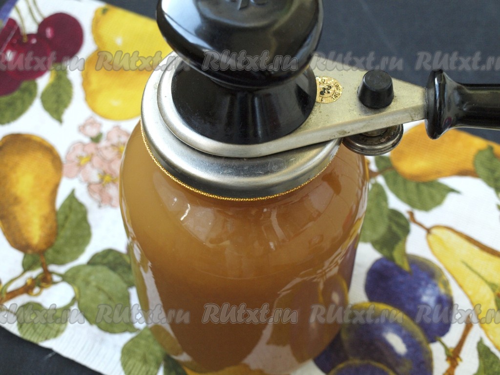 Горячий сок сразу же разливаем в сухие стерильные банки, накрываем ошпаренными кипятком крышками и закатываем ключом. Переворачиваем банки дном вверх и укутываем для дальнейшей стерилизации до полного остывания.