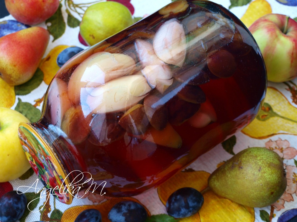 Вкуснейший компот из яблок, груш и слив прекрасно хранится в условиях городской квартиры. Зимой открываем банку компота и наслаждаемся вкусом.