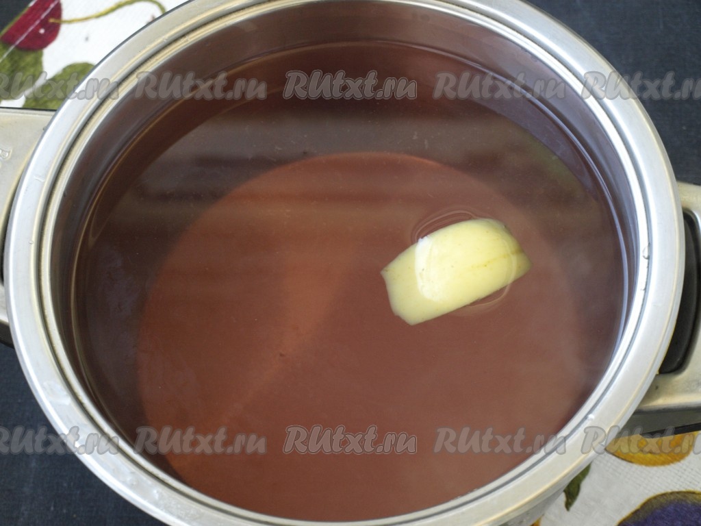 Спустя 15 минут, жидкость из банки слить в кастрюлю, довести до кипения, всыпать сахар, хорошо перемешать и варить сироп до растворения сахара.