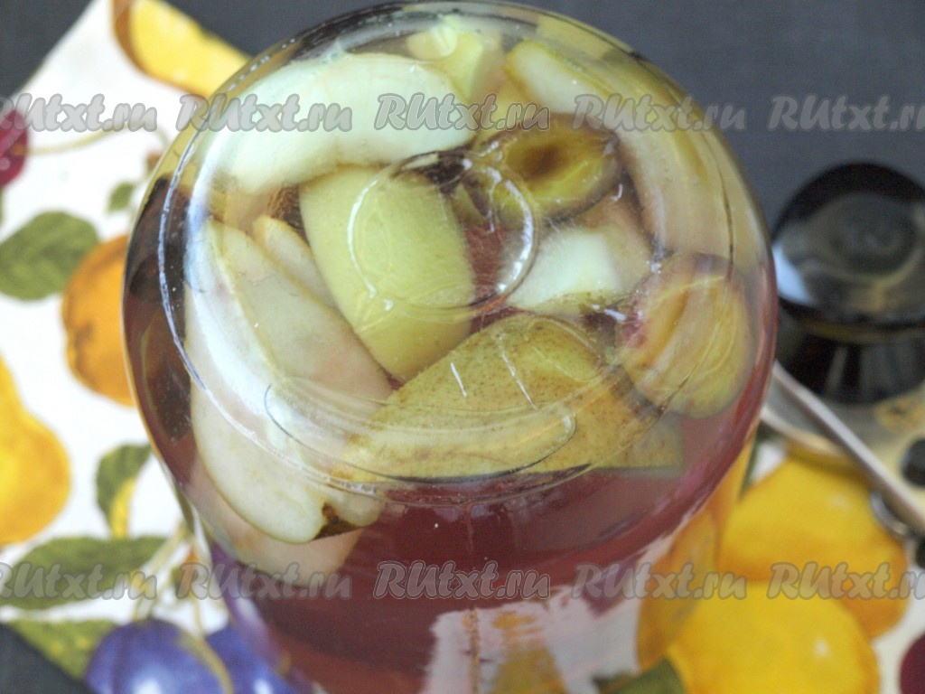 Предлагаю вам вариант приготовления компота из яблок, груш и слив на зиму. Компот-ассорти получается очень вкусным, ароматным и насыщенным, а сливы придают ему ещё и красивый цвет. Зимой такой напиток будет уместен на любом торжестве. Расчёт фруктов дан на банку объёмом 3 литра.