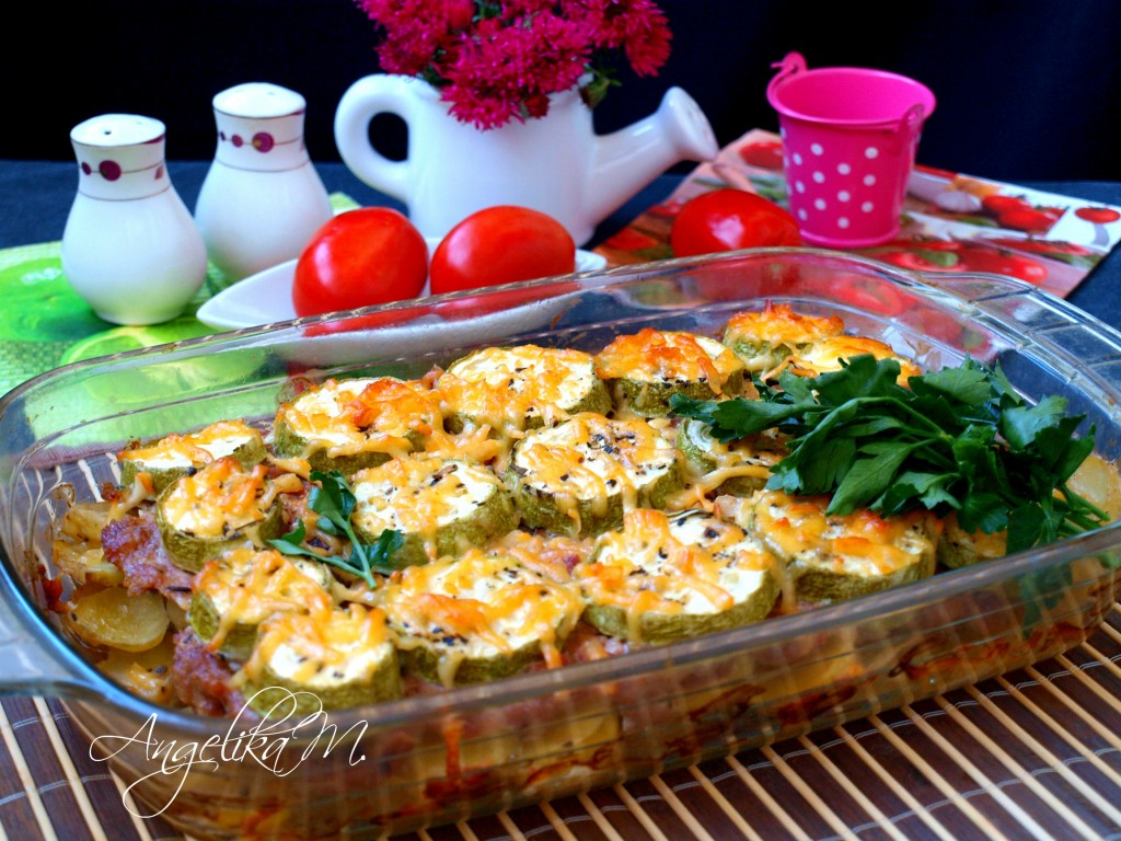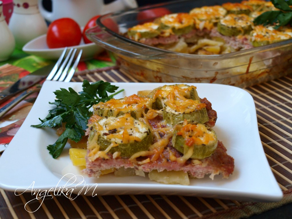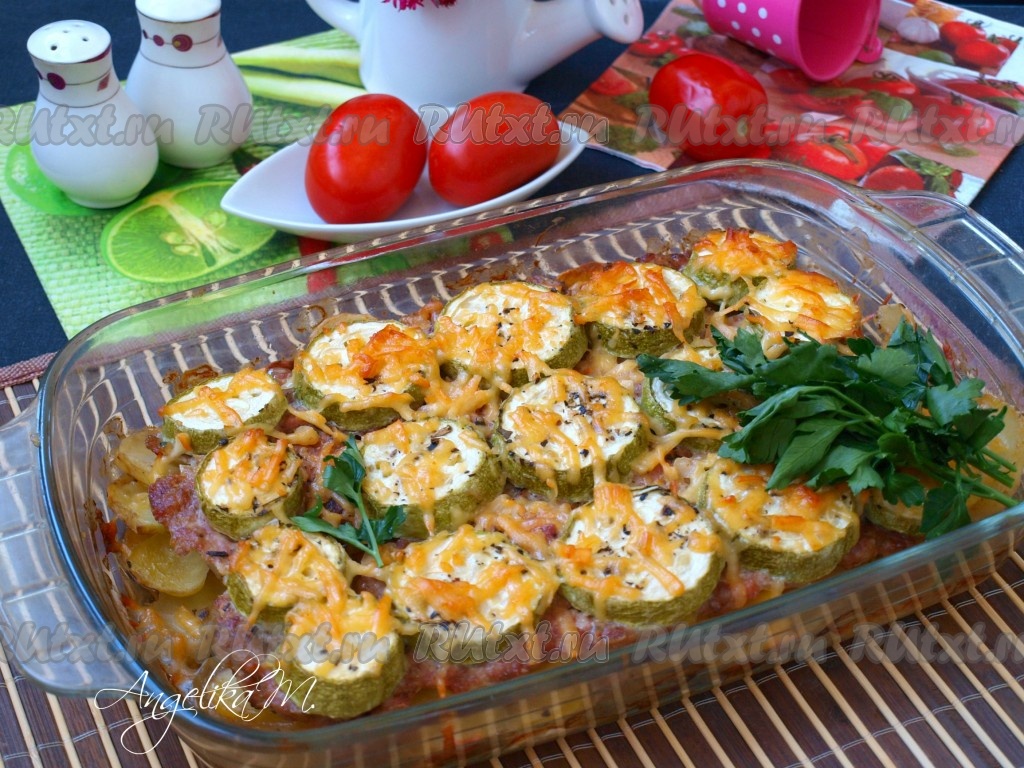 Предлагаю вам приготовить картошку с фаршем и кабачками в духовке. Это незатейливое и сытное блюдо разнообразит домашнее меню и порадует ваших домочадцев. Фарш можно использовать любой, я брала фарш из индейки. Картошку, запеченную в духовке с фаршем и кабачками, можно предложить в качестве второго на обед или подать к ужину, на завтрак тоже можно приготовить, если вы никуда не спешите и располагаете временем. Это простое и вкусное блюдо понравится многим, попробуйте!