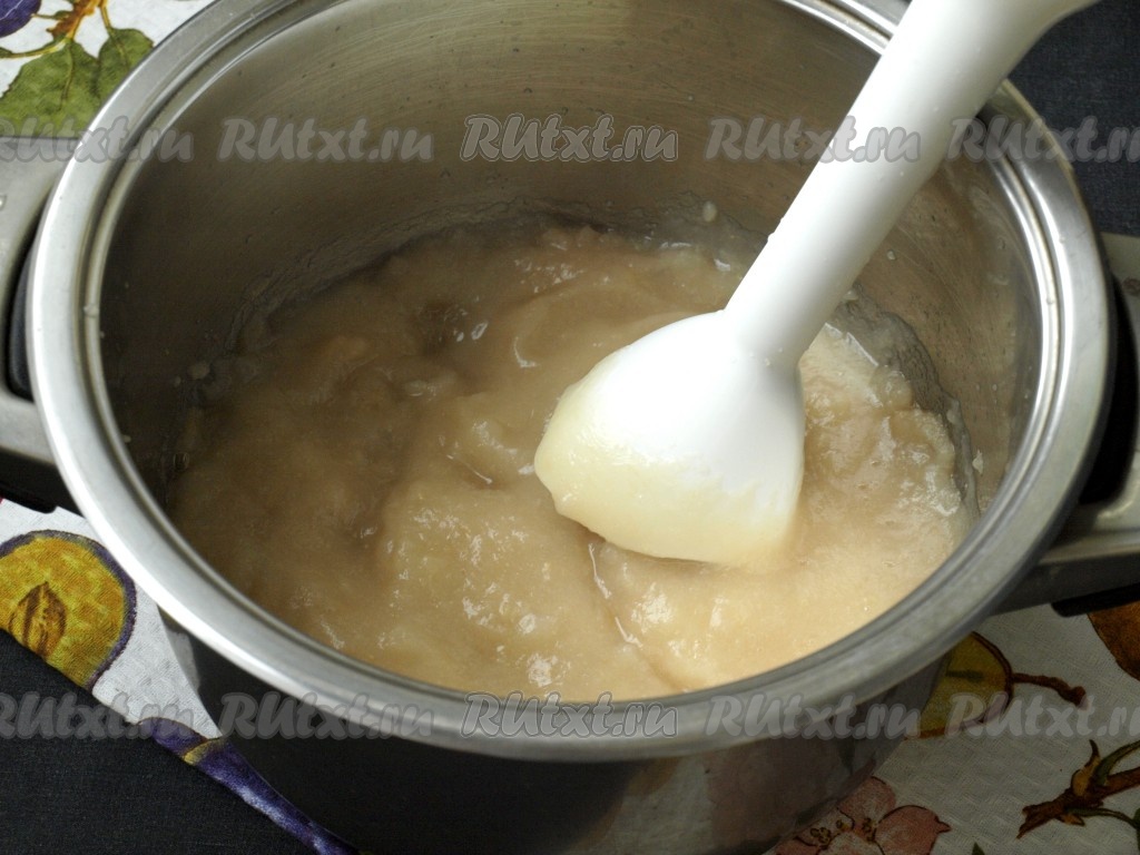 Далее измельчить яблоки и груши при помощи погружного блендера.